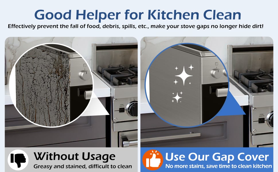 These stove gap covers are compatible with different counter tops, oven side gap, counter edge gap, effectively reducing the cleaning frequency of gaps.