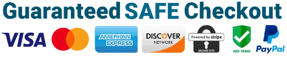 The Checkout Process is Guaranteed to be 100% Safe and Secure with Visa, Mastercard, AMex, Discover, Apple Pay or PayPal.